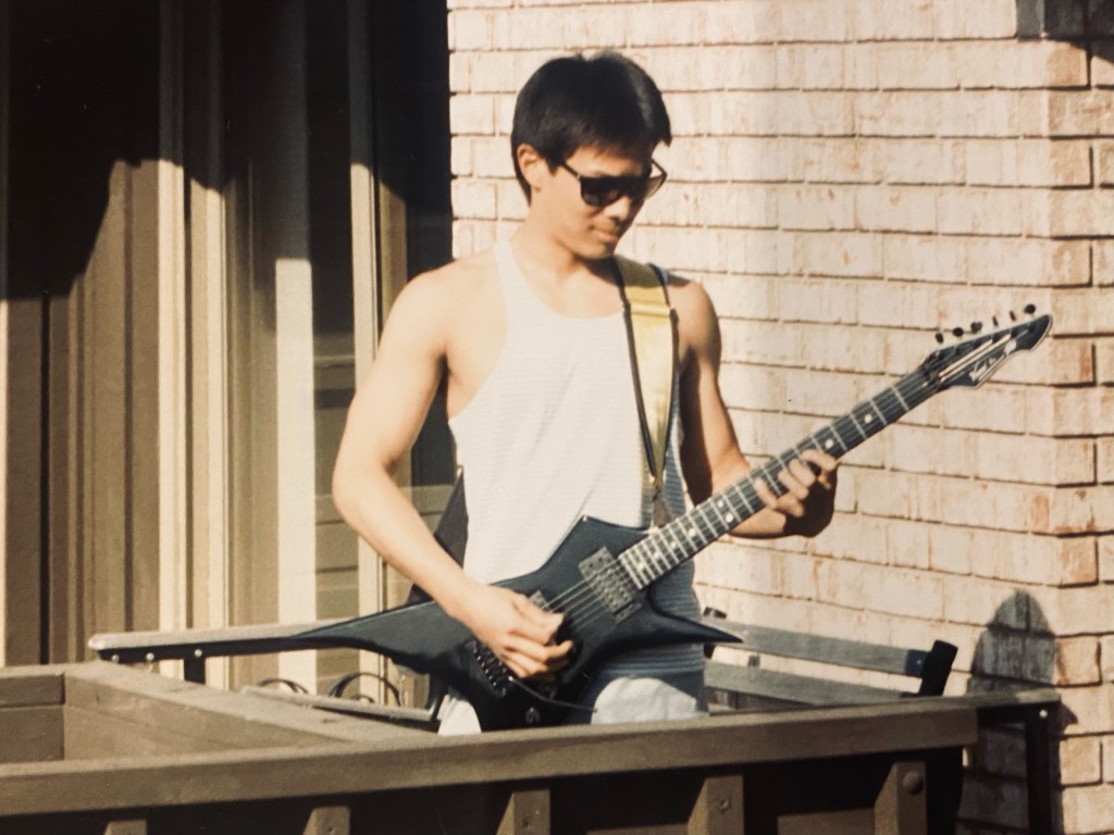 And then today Tuesday, I have my 2:30p electric guitar lesson. So far I’ve been learning to play some classical rock songs such as The House of the Rising Sun as well as Knocking On Heaven’s Door. I have only learned a few chords and rhythms, but it’s fun teaching my fingers new things (the F chord is still a bugaboo for me though!) In Seattle, Tanya was looking at old pictures my mom had collected and she found the below picture circa. 1988 of when I played the electric guitar for a couple of years. As they say, “some dreams die hard” : ) Below is also a chord chart I’ve been learning : )
