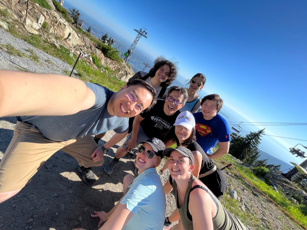 So a bit saddened for my friend who decided to turn around yet did not seemed satisfied with his climb, eight of us continued up the mountain. However, unbenownst to us and also Jonathan at the time, yet another option existed to get a bit more climbing in. Another trail exists on the mountain called the BCMC. We knew it was there, we just hadn’t thought in the moment this would be a great way to get some more climbing in, but the thought dawned on Jonathan on his way down that this would be a great way to do so, so Jonathan upon reaching the bottom of the mountain, turned around again and began to ascend but this time the BCMC, getting in all the climbing his heart desired, going up almost 20% of the way up the second trail before returning down. And btw, going down has its own kind of unique challenges. The rest of us took the Gondola at the top of Grouse down, so technically, Jonathan probably traversed close to the same distance as we had. What a great idea Jonathan and way to go! Jonathan then returned to the base to then reconnect with Tanya.