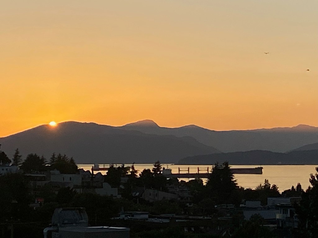 After enjoying the views at the top, the grizzlies and even for a brief while a lumberjack show, we headed down on the Gondola, reconnecting with Tanya and Jonathan. The evening ended with us having pizza together from Ruota on the rooftop of Laetitia’s place, which is near Grace Van. From Laetitia’s rooftop, the aerial view of English Bay was stunning, needless to say and the perfect way to cap off a near perfect Sabbath Day. We lost Vincent at that point since he had a dinner date with his parents, but Ben F. also connected with us. Since Ben was under a timeline crunch to finish some reading for a paper due tonight, he had been unable to do the climb with us. But it was fun that Ben could connect with us. Again, what a splendid day!